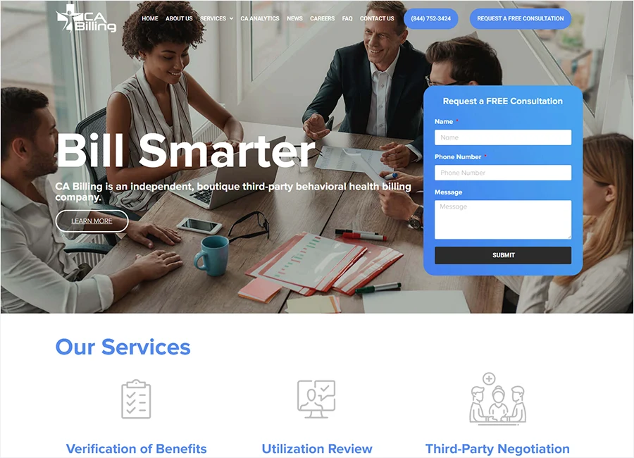 CA Billing is a third-party behavioral health billing company that already had a website with a friendly interface, but it needed changes to maximize its potential. Third Hatch helped improve the original site’s accessibility ratings without straying from the original design, and it now has greater perfomance than its previous iteration.